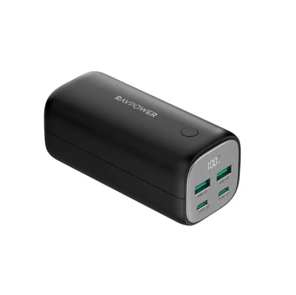 تم تجهيز هذه البطارية المتنقلة بمنفذين تايب سي ومنفذين USB-A، مما يتيح لك شحن أربعة أجهزة في وقت واحد. يمكنك استخدام المنافذ تايب سي لشحن الأجهزة التي تدعم تقنية Power Delivery بقوة تصل إلى 70 واط، مثل اللابتوبات والأجهزة اللوحية والهواتف الذكية المتوافقة. أما المنافذ USB-A، فيمكن استخدامها لشحن الهواتف الذكية وأجهزة اللوحية وسماعات الرأس والأجهزة الإلكترونية الأخرى.