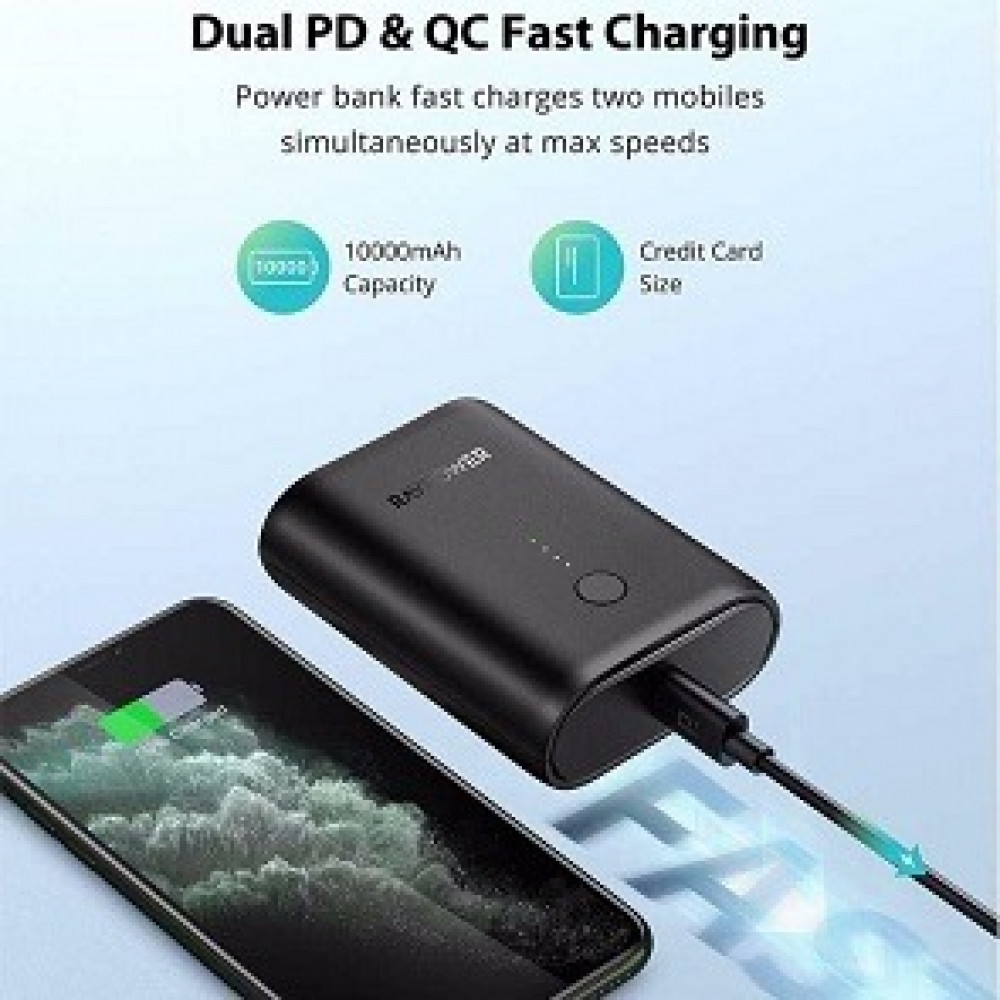 - باور بانك (شاحن متنقل) 10000mAh - 18W يدعم الشحن السريع PD وبحجم بطاقة الصراف