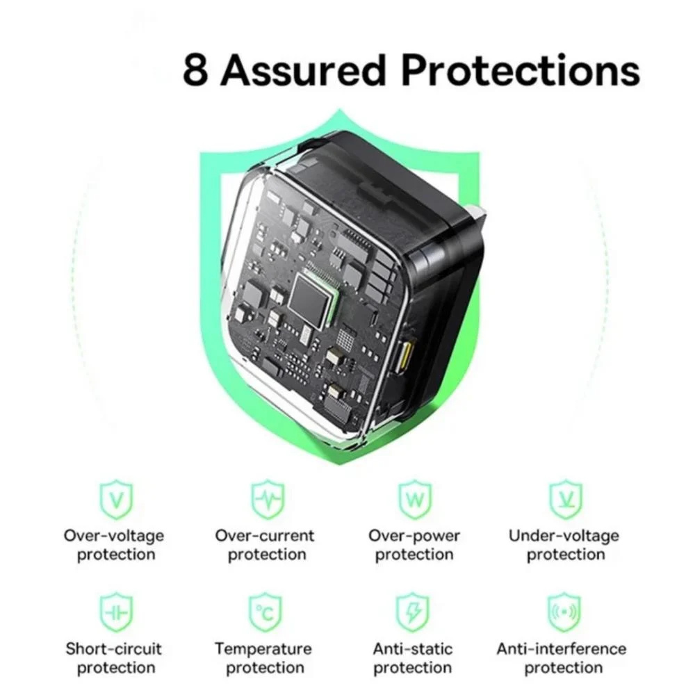 - أمان كامل: حماية من الجهد الزائد، التيار العالي، والحرارة الزائدة لتأمين أجهزتك.