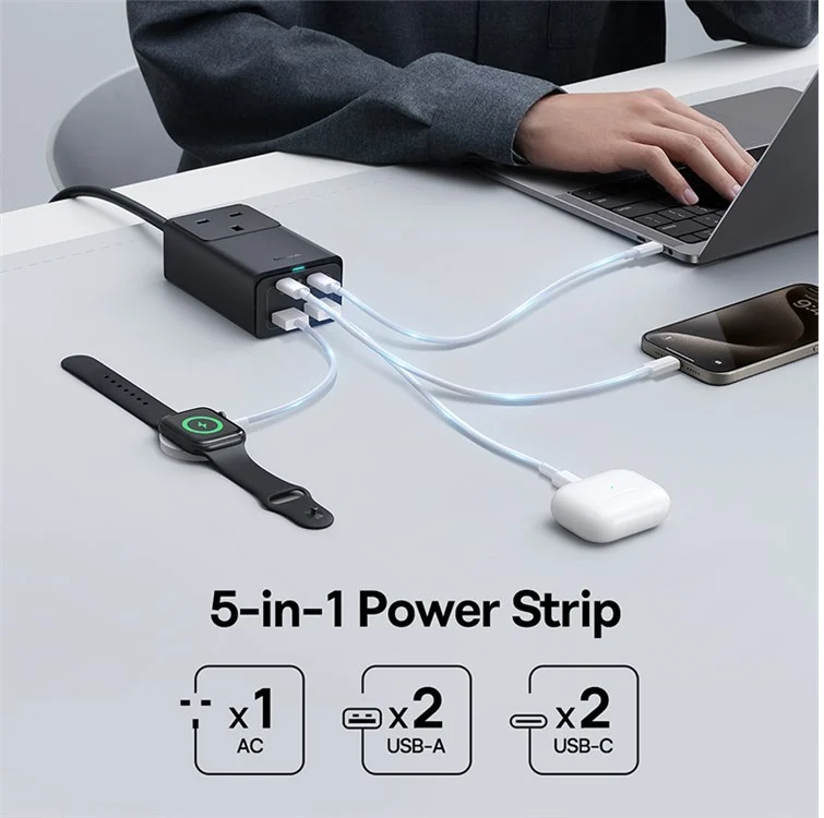 مخرج 5 في 1: خيارات الشحن AC+2*USB+2*Type-C توفر شحنًا فرديًا للأجهزة المختلفة في وقت واحد