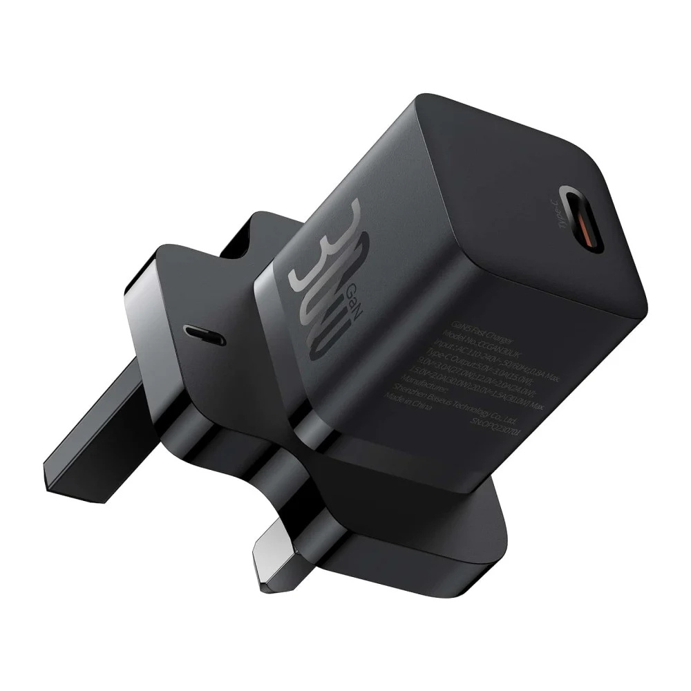 🔌 فيش جداري بيسوس GaN5 بقوة 30 واط – أسود