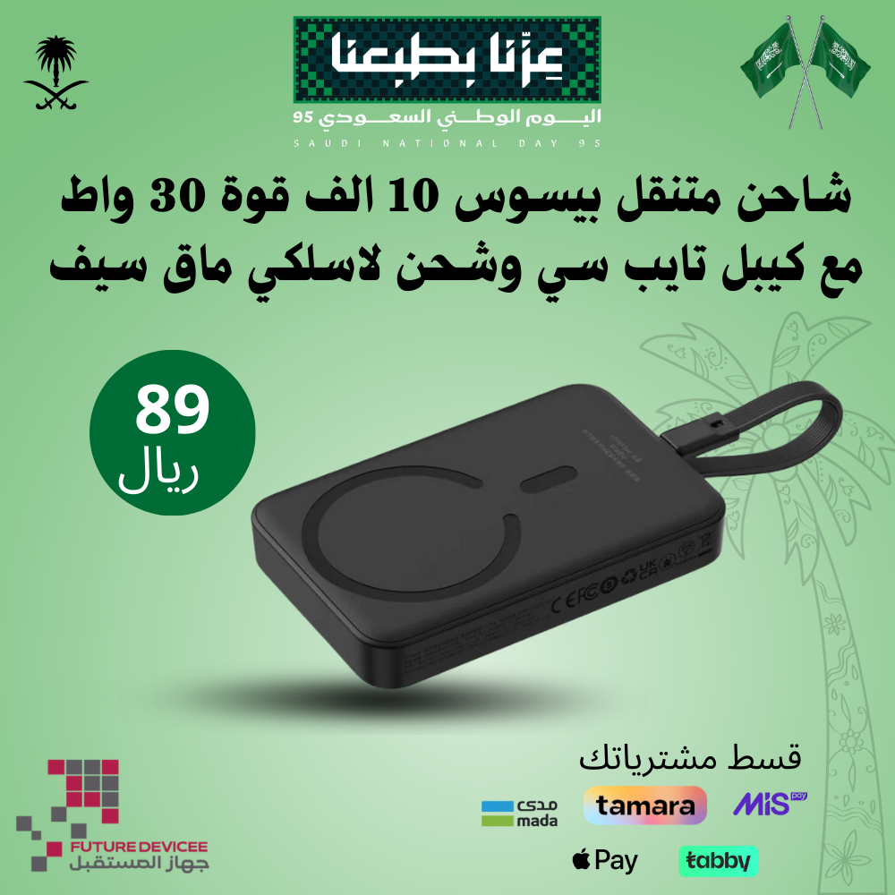 عروض اليوم الوطني – شاحن متنقل بيسوس بسعة 10000mAh وقوة 30 واط