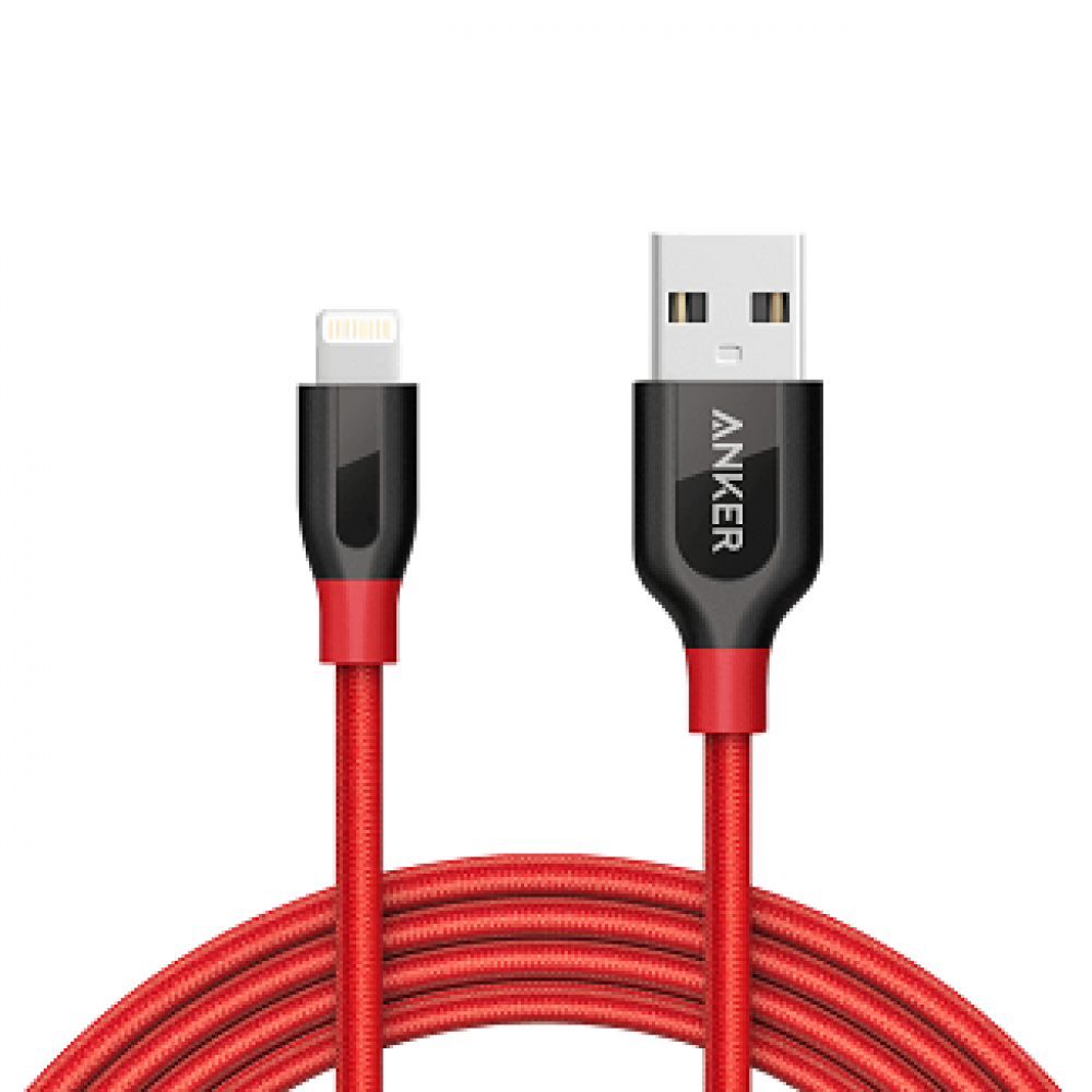 كيبل انكر ايفون قماش باور لاين بلس 1.80م لأجهزة آبل أحمر أسود