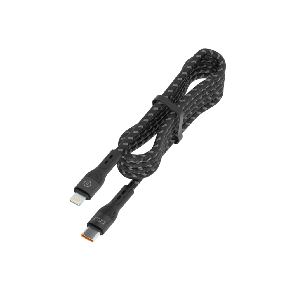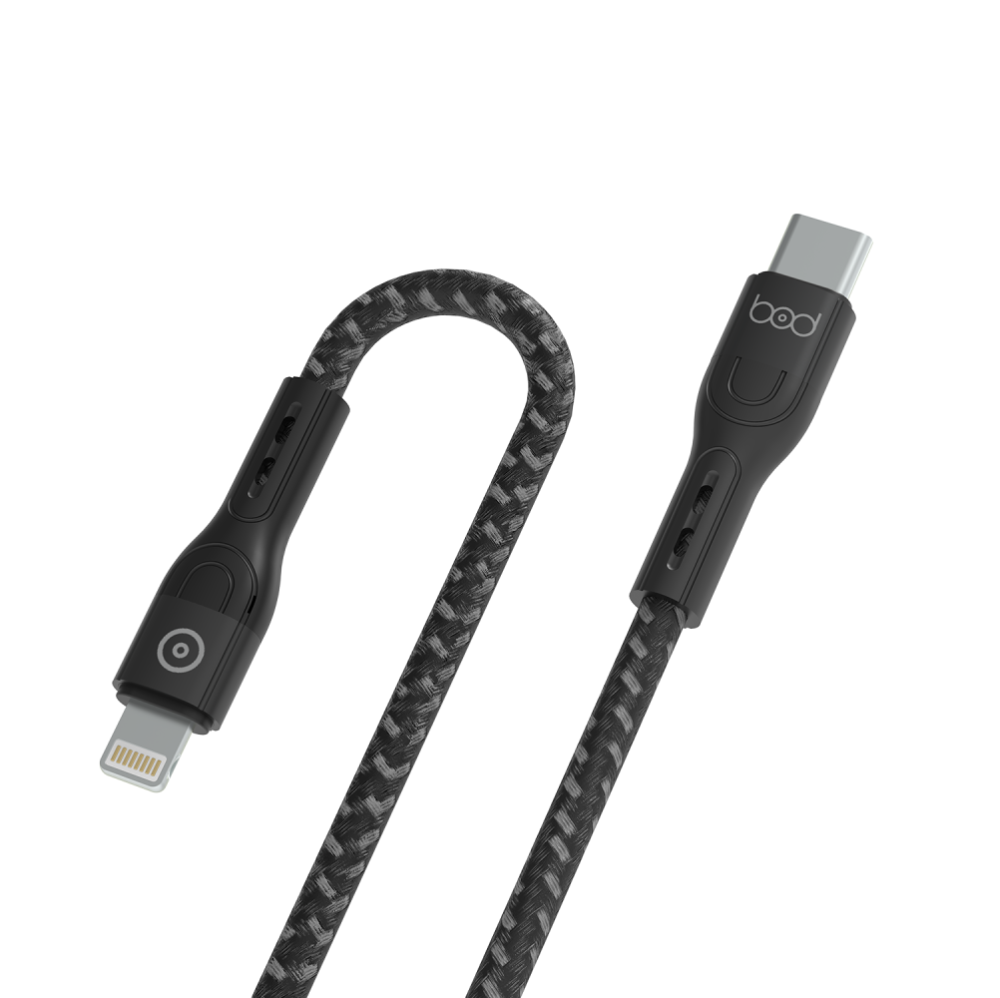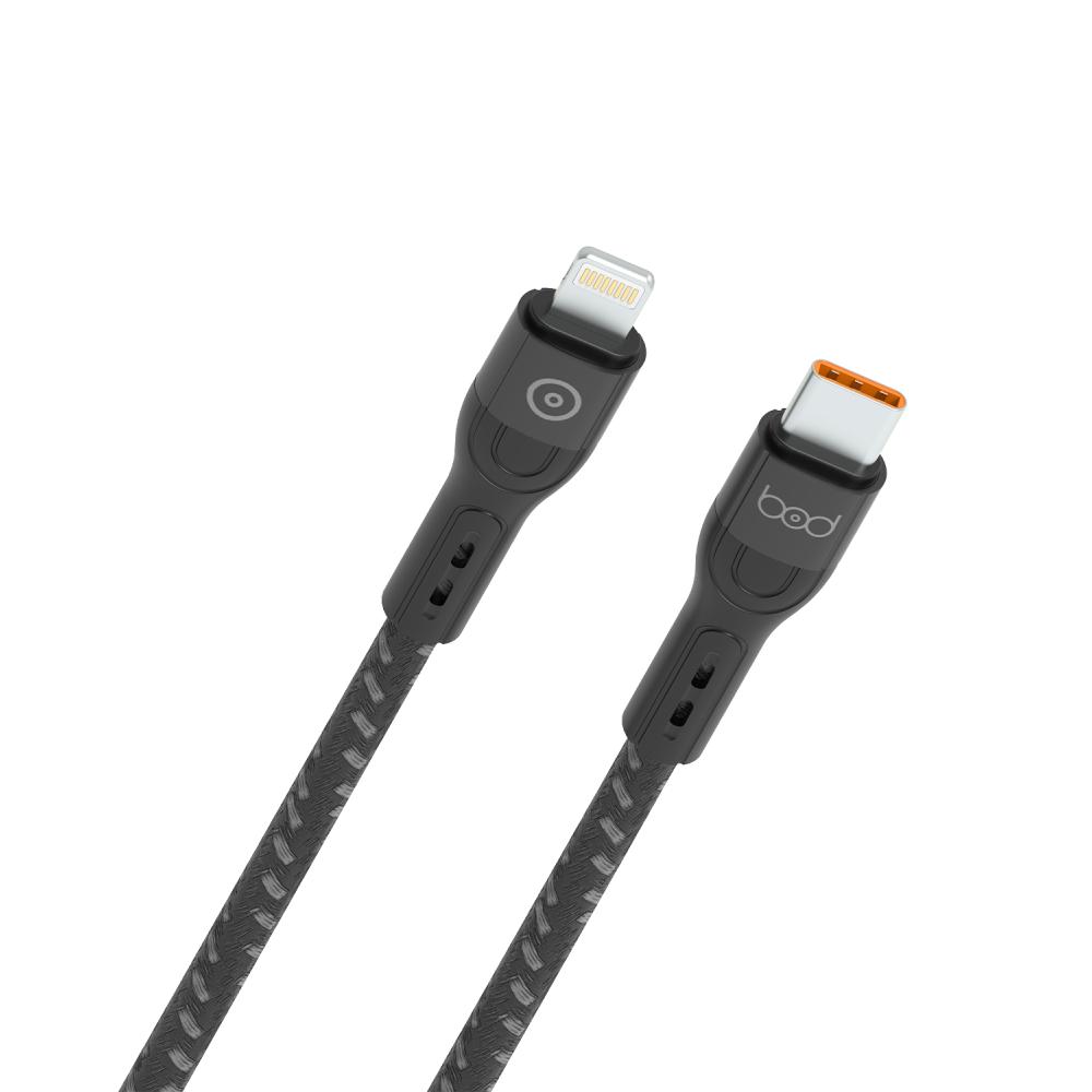 كيبل ايفون تايب سي 200 سم قماش اسود ماركة بود bod